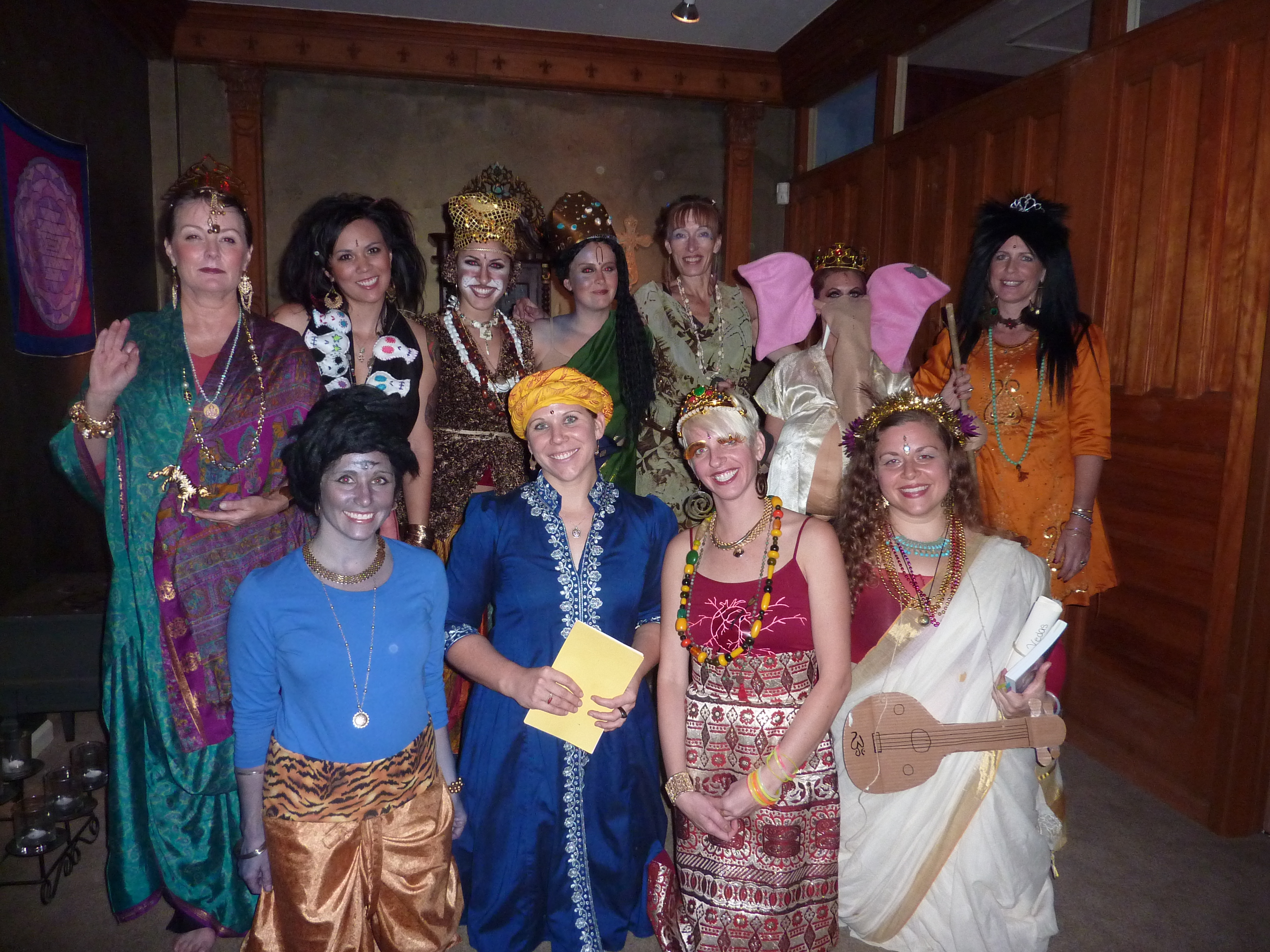 It is part of the YTT (Yoga Teacher Training). The candidates had to prepare an ayurvedic Indian dinner that they learned how to cook and they had to put on a play about the Hindu Deities. The performance and dinner was a huge success. Thanks to all for coming. The costumes were fabulous and so was the food. They did a great job! We are so proud of you all. We wish you well.