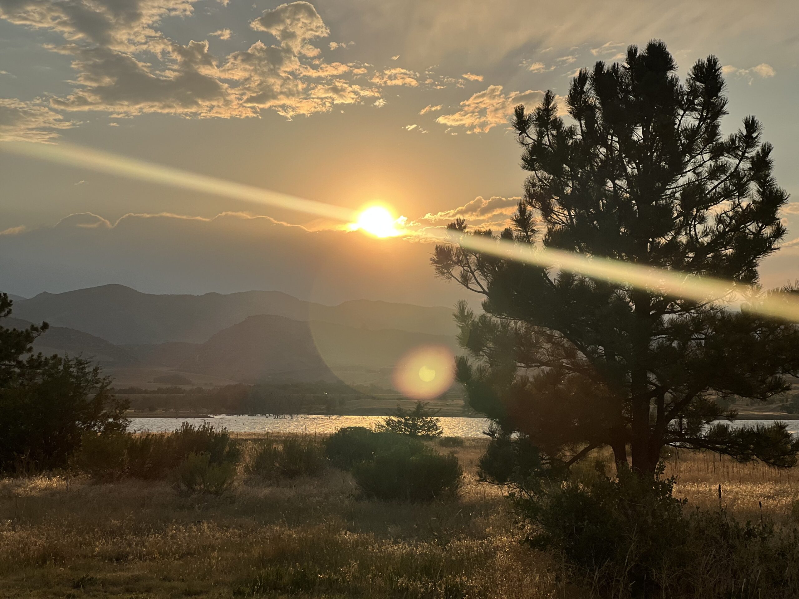 We are closing the out summer by extending our camping adventure; what was going to be 10 days at Chatfield reservoir has morphed into 25 days. We were in the right place at the right time to grab another spot once our original one was up. We have a pop-up camper that we have ”tricked” out and so we spend many nights sleeping in the open air and living amongst the natural elements. We are close enough to Denver that we can drive in to teach our classes, do our work, and keep an eye on our house, but far enough out that we have owls and deer and western tanagers coming by on the regular. Its like having lakefront property with million dollar views, but without the mortgage that comes with that. I can’t say we are unplugged but we are out of the fray and things slow down out here. We look out across a field of golden hay with the mountains in the back drop, and the cool, blue lake in front of us. The campground is quiet and the sunrises and sunsets have been amazing. We are in our element here.